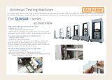 Dual column floor model testing machine Quasar 250 of 250 kN commonly used for automotive and aerospace industry, non-ambient temperature applications of metals, plastics, wood, composites, technical textiles.