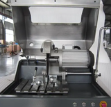 Simple but robust designed bench top sample cut off machine. Ideal for cutting samples up to 50mm in diameter. Delivered with large coolant tank on wheels (50L).
