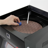 The ideal solution for basic polishing operations. LE CUBE is a Ø 200 and 250mm manual polishing machine. Simple, reliable and sturdy, it is the ideal solution for laboratories, schools or research centres. Equipped with a frequency inverter, LE CUBE has a high-torque motor turning either clockwise or counter-clockwise. The polishing plate is equipped with two speed rotation settings (150 & 300 RPM). The multi-jet water spray ensures the optimum lubrication of the platen surface. With its removable platen the cleaning of the machine is very easy. LE CUBE is dust free thanks to the clear integrated hood. LE CUBE direct transmission on bearings confers an incomparable silence in use. LE CUBE can be used with any type of polishing surface: non-adhesive, adhesive, PRESI Reflex System and magnetic. No particular adaptation is required.