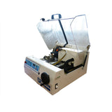 - • Precision micro-cutting machine automatic. • Cut-off wheel Ø 75 to 200 mm. • Cutting capacity 60 x 60 and 60 x 200 mm. • Cast iron table 200 x 210 mm – 3 longitudinal T-slots, 3 transverse T-slots. • Rapid movement of table for positionning. • Control of cutting length • Motorised vertical movement of cutting dis, 60 mm. • Variable speed rotation 300 to 5000 Rpm. • Feed speed 6 to 100 mm/min. • Motor 750 watts. • Electronic control panel with large display. • Cooting tank : 5 l, with pump. • Built in accordance with EEC standards. • Voltage 230 V 50 Hz.