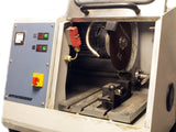 - Max Cutting Capacity: 90 mm Max Cut Off Wheel Size: 256 mm Arbor Size: 32 mm Table Size: 350 x 288 mm 12 mm T-slot Motor: 4 HP Power: 415 V / 50 Hz, 3 Phase Dimensions W x H x D: 32 x 29 x 26″ Weight: 166 lbs